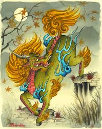 Kirin yang mana dipercaya sebagai binatang bijaksana dan disimbolkan sebagai anak cucu yang berbakti. Kirin yang jantan disebut "Ki" dan betina disebut "Rin". Kirin digambarkan dengan tubuh berbadan rusa (elaphurus davidianus), berkaki kuda, berekor sapi, kuku bulat, kepala serigala dengan sebuah cula yang berisi atau berotot.